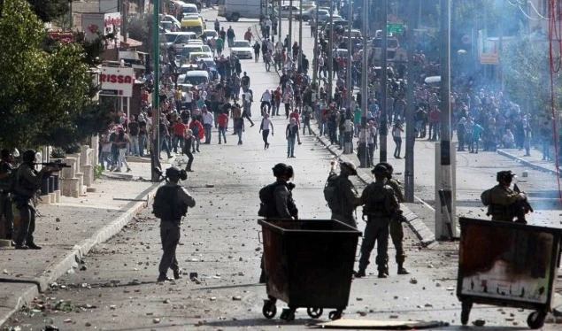 Los choques se registraron en medio de una protesta de los palestinos en apoyo a sus conciudadanos presos que llevan a cabo una huelga de hambre en las cárceles del régimen de Israel.