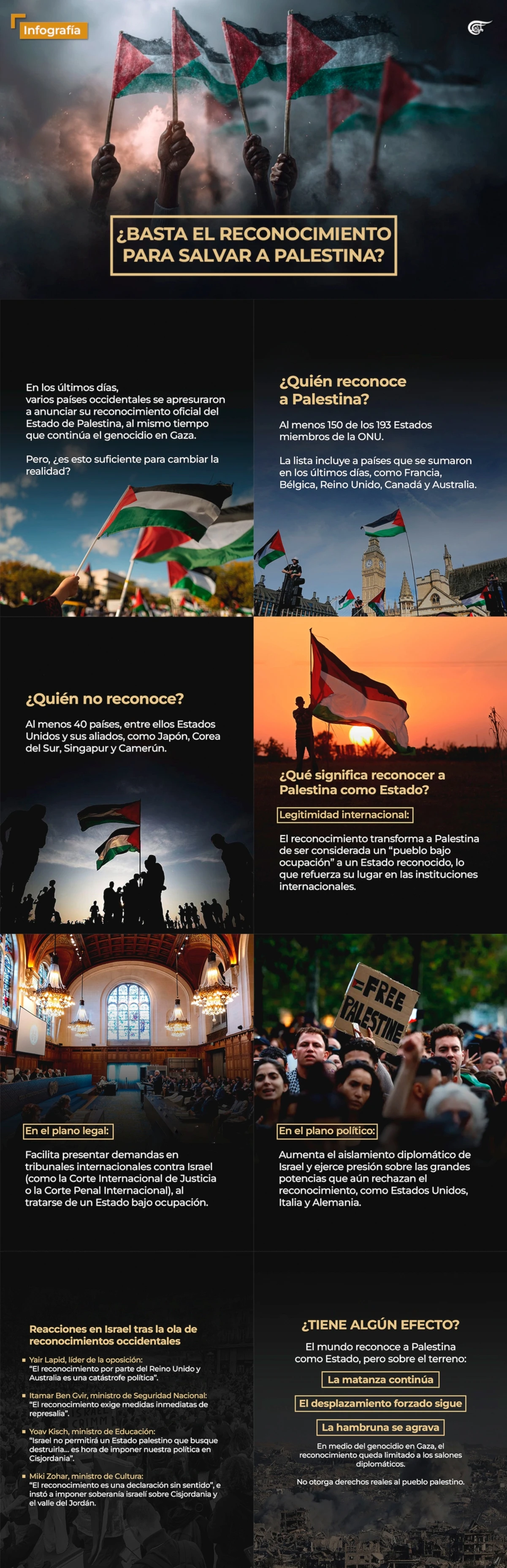 ¿Basta el reconocimiento para salvar a Palestina? 26 Visualizaciones El mundo reconoce a Palestina como Estado, pero sobre el terreno: La matanza continúa, el desplazamiento forzado sigue, la hambruna se agrava. En medio del genocidio en Gaza, el reconocimiento queda limitado a los salones diplomáticos.