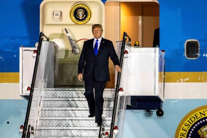 Trump bajó de su avión Air Force One, saludó a quienes se encontraban en el lugar y abordó el automóvil que lo llevaría hasta el lugar donde se hospedará sin ofrecer declaraciones.