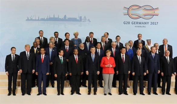 Merkel, al usar la imagen del logo de la cumbre, un nudo marinero, para visualizar la importancia del consenso en la escena internacional, advirtió a sus socios de que el G20, como el nudo, puede verse reforzado cuanto más se tira en ambos lados.