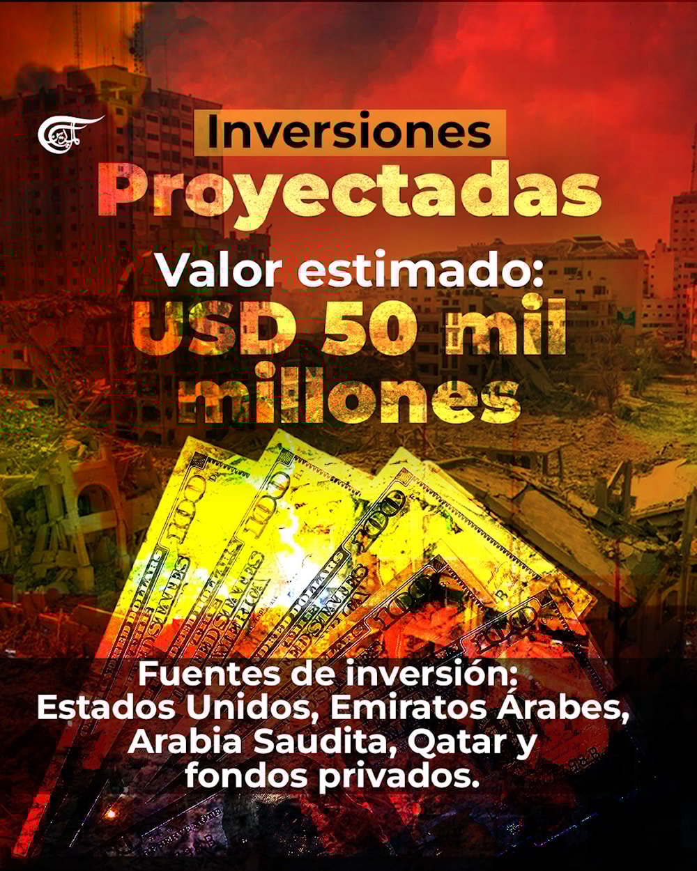 El componente económico del plan busca atraer entre 30 mil y 50 mil millones de dólares en inversiones privadas, principalmente del Golfo.